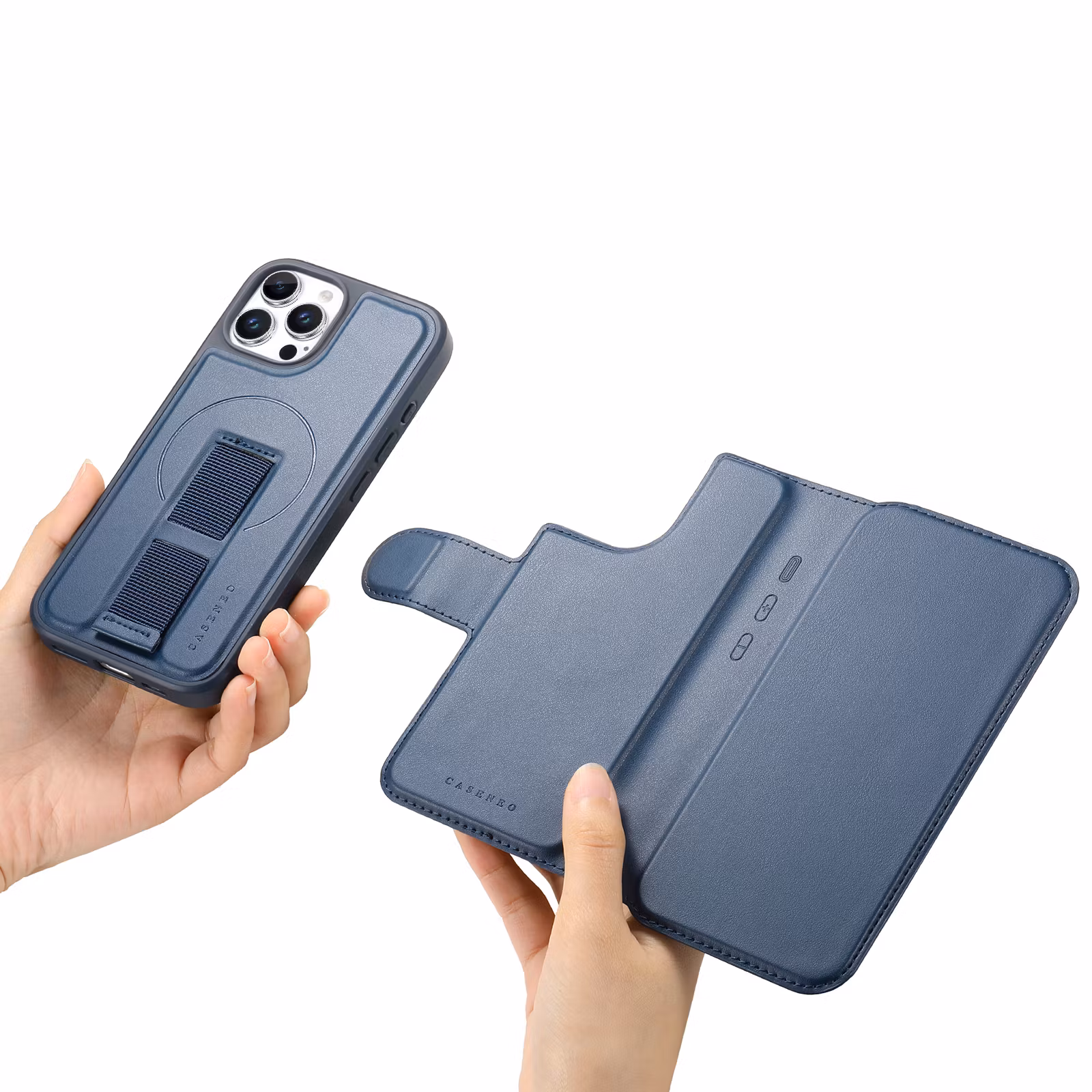 Blå Plånbok med MagSafe-skal & fingerband för iPhone 13 Pro