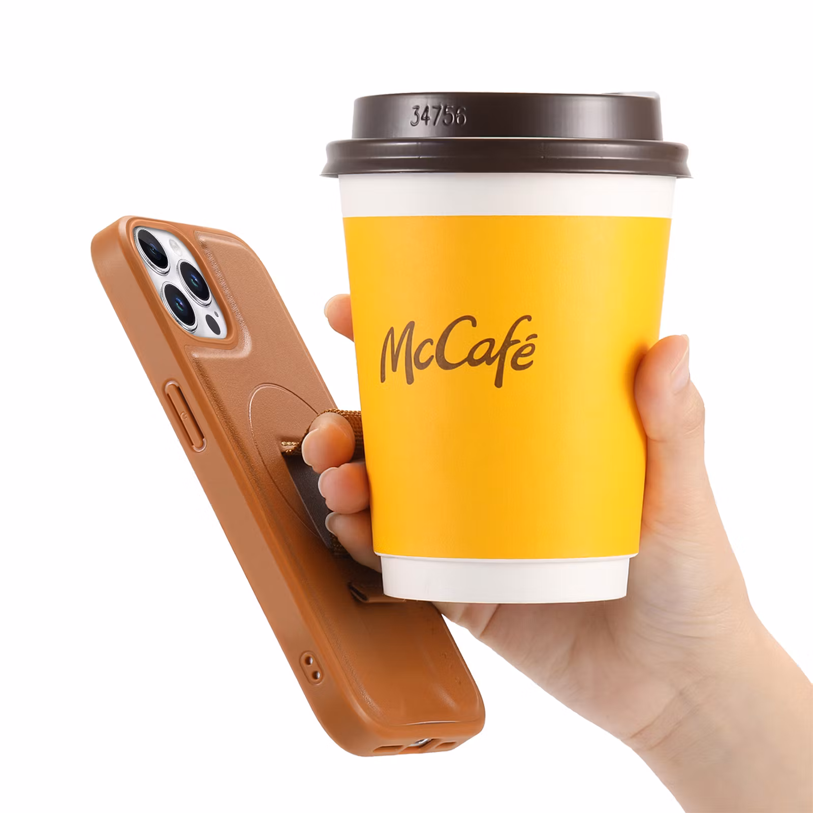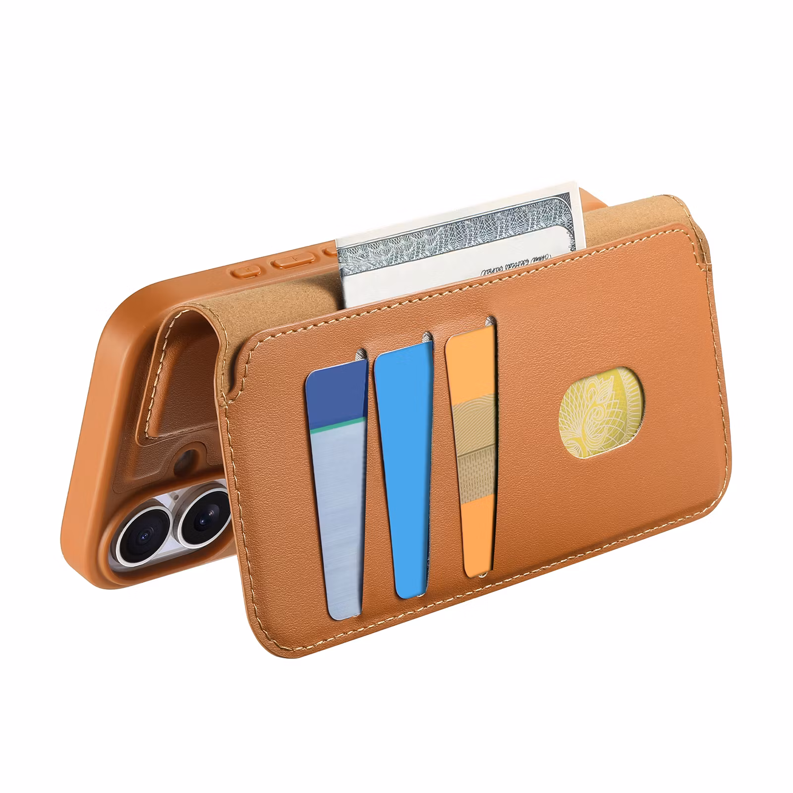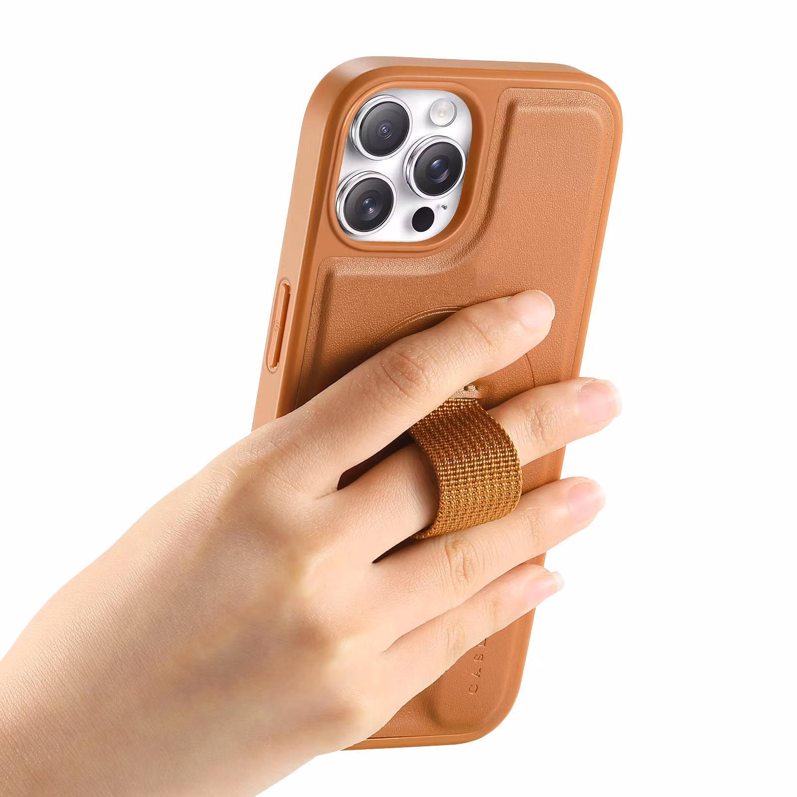 Med denna bruna iPhone 13 Pro plånbok med MagSafe-skal och fingerband får du en praktisk lösning som kombinerar säkerhet, stil och bekvämlighet – perfekt för dig som vill ha både design och funktion.