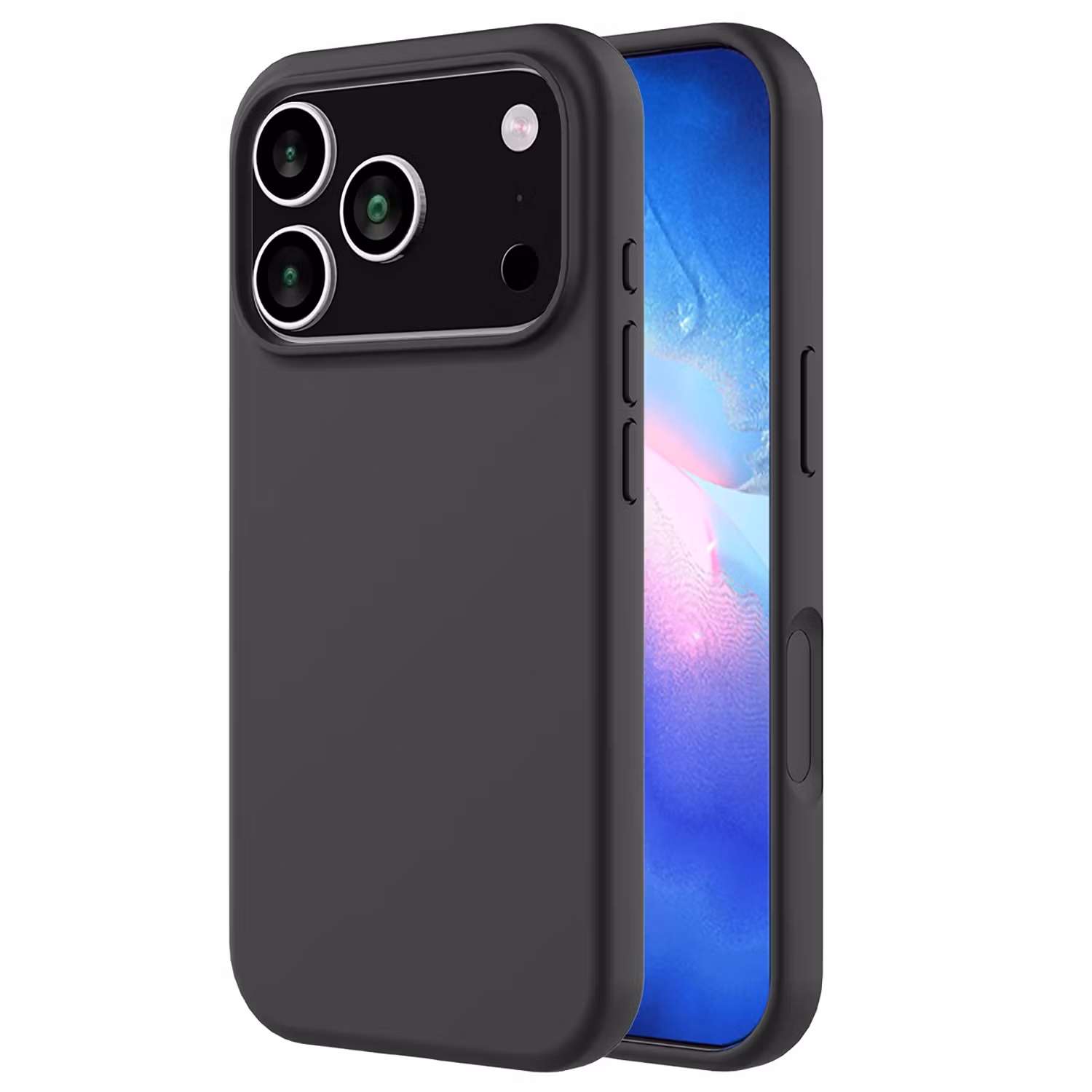 iPhone 17 Pro Max silikonskal i svart färg som skyddar din iPhone mot repor och skador. Kompatibel med trådlös laddning