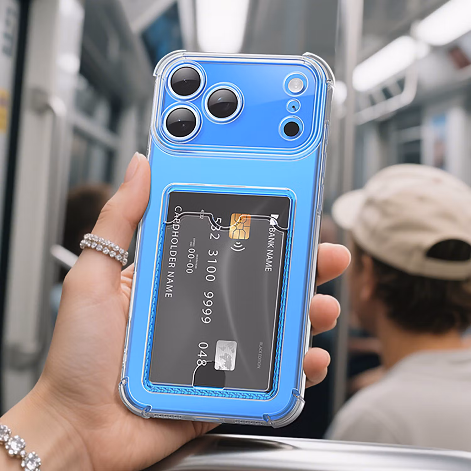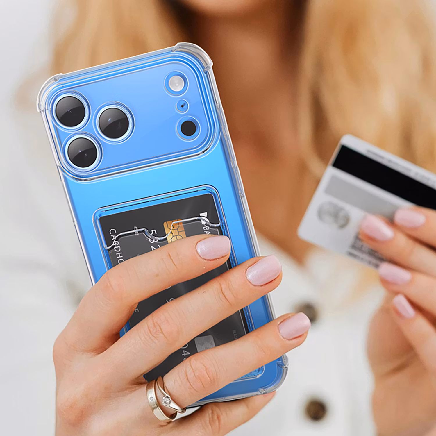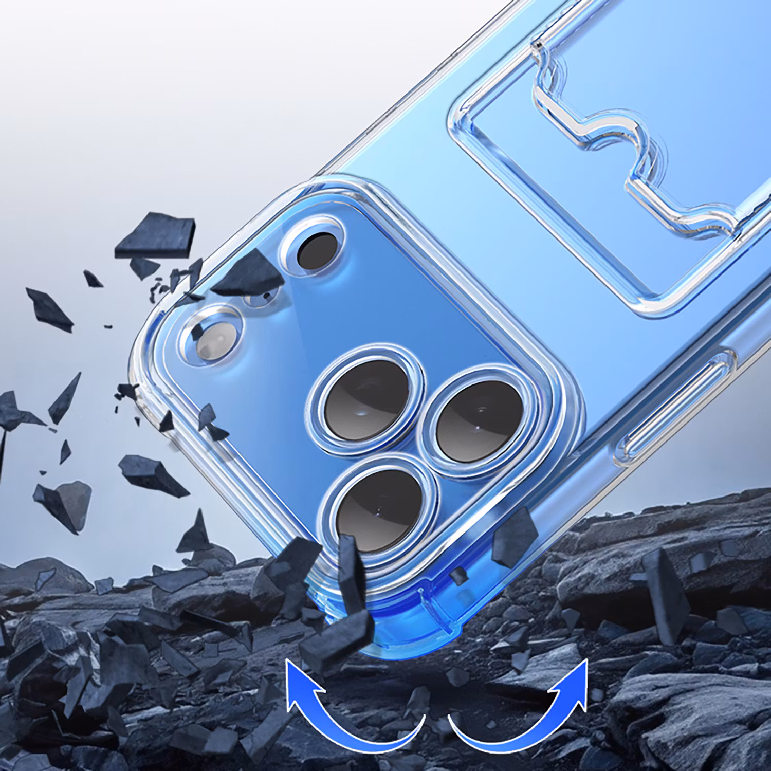 Skydda din iPhone 17 Pro Max med detta stöttåliga skal, som är transparent och har en Kortfack. Skydda din telefon från stötar, repor och andra skador.